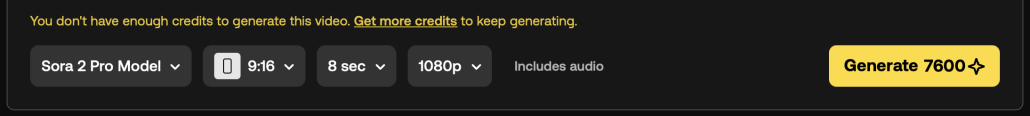 This is a breakdown you can see on the right side in yellow the Artlist.io credits needed to generate text to video: